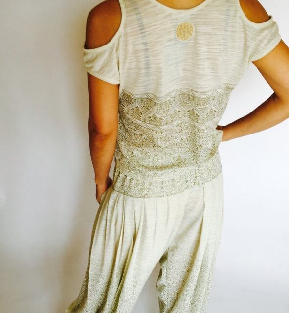Complimented by the Dhoti's unique pleated sideswept feature,its an effortlessly elegant look for Yoga classes and sidewalk strolls.